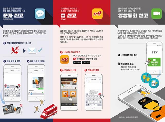 119´Ù¸Åü ½Å°í¼ºñ½º´Â ÀüȺÒÅë µî À½¼ºÅëȰ¡ °ï¶õÇÑ »óȲ¿¡¼ÀÇ ÂªÀº ¹®ÀÚ(SMS) ¶Ç´Â »çÁø, ¿µ»ó µîÀ» ÷ºÎÇÑ ¹®ÀÚ(MMS) ½Å°í, 119½Å°í ¾Û(App)À» ÅëÇÑ ½Å°í, û°¢Àå¾ÖÀÎ ¹× ¿Ü±¹Àο¡°Ô À¯¿ëÇÑ ¿µ»óÅëÈ ½Å°í·Î ±¸¼ºµÇ¾î ÀÖ´Ù.