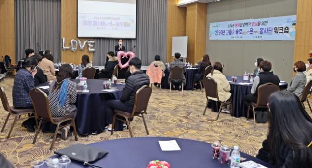 ¡®°íÈïäñ ¼Ö·Î¸ó ºÀ»ç´Ü¡¯Àº °íÈﱺ¿¡ °ÅÁÖÇÏ¸é¼ Á÷Àå¿¡ ´Ù´Ï´Â ¹ÌÈ¥³²³à·Î ±¸¼ºµÈ ºÀ»ç´ÜÀ¸·Î À̹ø ¿öÅ©¼óÀº 1³â µ¿¾ÈÀÇ ºÀ»çȰµ¿À» µÇµ¹¾Æº¸°í ºÀ»ç´Ü¿øµéÀÇ À¯´ë°È¸¦ À§ÇØ ¸¶·ÃµÇ¾ú´Ù.