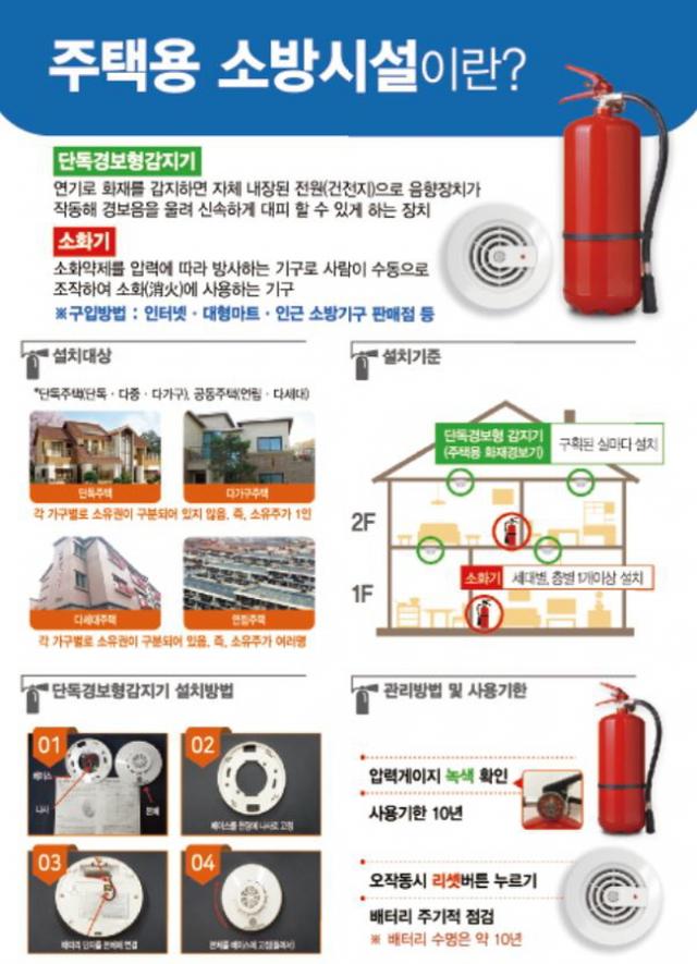 ¼³Ä¡´ë»óÀº ´Üµ¶¡¤´Ù°¡±¸¡¤¿¬¸³¡¤´Ù¼¼´ë ÁÖÅÃ(¾ÆÆÄÆ® ¹× ±â¼÷»ç Á¦¿Ü)ÀÌ´Ù. ¼Òȱâ´Â ¼¼´ëº°, Ãþº° 1°³ ÀÌ»ó¾¿ ¼³Ä¡ÇØ¾ß Çϸç, ´Üµ¶°æº¸Çü °¨Áö±â´Â ±¸È¹µÈ ½Ç¸¶´Ù ÇÑ °³¾¿ ¼³Ä¡ÇؾßÇÑ´Ù.