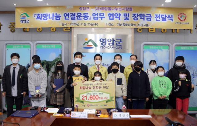 À̹ø ¾÷¹«Çù¾àÀ» ÅëÇØ (»ç)Èñ¸ÁÀ» ³ª´©´Â »ç¶÷µé¿¡¼´Â ¿µ¾Ï±º °ü³»¿¡ »çȸÀûÀ¸·Î ¼Ò¿ÜµÇ°í ¾î·Á¿î ȯ°æ¿¡ ÀÖ´Â Àú¼Òµæ ÃÊÁßÇб³ ÀåÇлý 12¸í¿¡°Ô 1,600¸¸¿ø »ó´çÀÇ ÀåÇбݰú ÄÄÇ»Å͸¦ Àü´ÞÇÏ¿´°í ¾ÕÀ¸·Î 2³â°£ ¿µ¾Ï±º °ü³» Àú¼Òµæ ¾Æµ¿¡¤Ã»¼Ò³â¿¡ ´ëÇÑ ÀåÇÐÀ» Áö¿øÇϱâ·Î ÇÏ¿´À» »Ó¸¸ ¾Æ´Ï¶ó ¼Ò¿Ü°¡Á¤¿¡°Ô 2¾ï¿ø »ó´çÀÇ »ýÇÊǰÀ» Ãß°¡·Î Áö¿øÇϱâ·Î ÇÏ¿´´Ù.