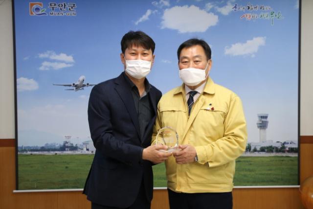 [È£³²´º½º¶óÀÎ = ¼ÀºÈ« ±âÀÚ] ±è»ê ¹«¾È±º¼ö(¿À¸¥ÂÊ)´Â 1ÀÏ ±ºÃ» ±º¼ö½Ç¿¡¼ Æí¸®ÇÑ Ç×°ø±³Å뼺ñ½º Á¦°ø¿¡ ±â¿©ÇÑ °ø·Î·Î Á¦ÁÖÇ×°ø ÀÌöÇà ´ë¿ÜÇù·Âº»ºÎÀå(¿ÞÂÊ)À¸·ÎºÎÅÍ °¨»çÆÐ¸¦ Àü´Þ¹Þ¾Ò´Ù.
