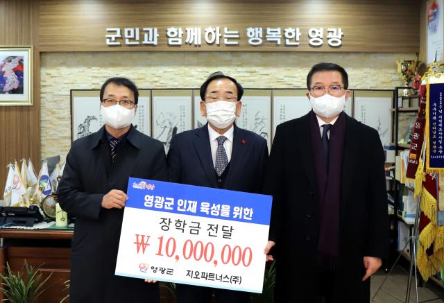 Áö¿ÀÆÄÆ®³Ê½º(ÁÖ)´Â ¿µ±¤À¾ ¹éÇи® 330¹øÁö ÀÏ¿ø¿¡ Çö´ëÈú½ºÅ×ÀÌÆ® 499¼¼´ë¸¦ À¯Ä¡ÇÑ ½ÃÇà»ç·Î, °µ¿¿À ȸÀåÀº ¡°ÀûÀº ±Ý¾×ÀÌÁö¸¸ ¿µ±¤±º ÀÎÀçÀ°¼ºÀ» À§ÇØ ÀåÇбÝÀ» Àü´ÞÇÒ ¼ö ÀÖ¾î ¸Å¿ì ±â»Ú´Ù.¡±¸ç, ¡°ÇâÈÄ ±âȸ°¡ µÈ´Ù¸é Á» ´õ ¸¹Àº ±Ý¾×À» ÀåÇбÝÀ¸·Î ±âŹÇÏ°í ½Í´Ù.¡±´Â ¸»À» ÀüÇß´Ù.