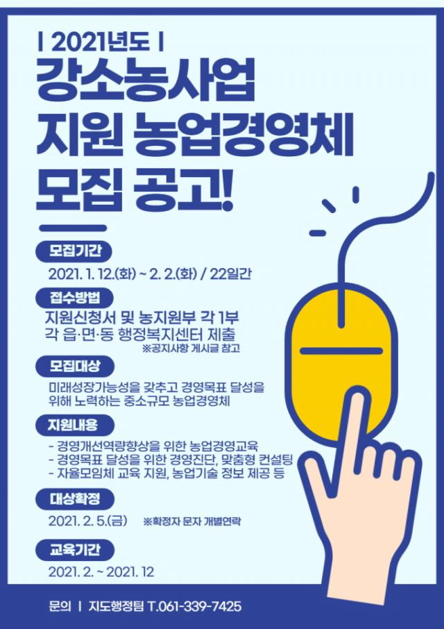 ³ªÁÖ½Ã(½ÃÀå °ÀαÔ)´Â 2021³âµµ °¼Ò³ó Áö¿ø»ç¾÷ ´ë»ó ³ó¾÷ °æ¿µÃ¼¸¦ ¿À´Â 2¿ù 2ÀϱîÁö ¸ðÁýÇÑ´Ù°í 12ÀÏ ¹àÇû´Ù. ¸ðÁý ´ë»óÀº °æ¿µ°³¼± ½ÇõÀÇÁö°¡ ÀÖ´Â °ü³» Áß¼Ò±Ô¸ð ³ó¾÷ÀÎ(³ó¾÷ °æ¿µÃ¼)ÀÌ´Ù.