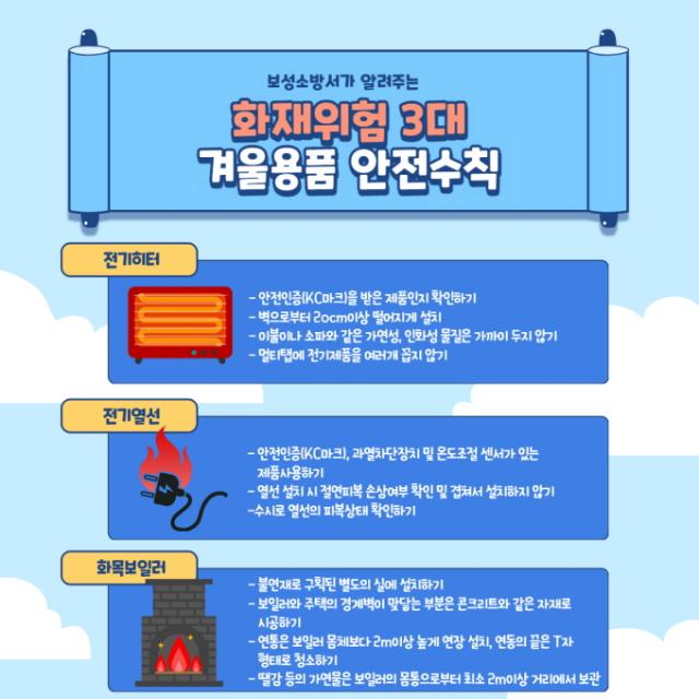 [È£³²´º½º¶óÀÎ = ¼ÀºÈ« ±âÀÚ] º¸¼º¼Ò¹æ¼(¼Àå Á¶Á¦Ãá)´Â °Ü¿ïö ÈÀçÀ§Çè 3´ë °Ü¿ï¿ëǰÀÎ Àü±âÈ÷ÅÍ․ÀåÆÇ, Àü±â¿¼±, ȸñº¸ÀÏ·¯ ¾ÈÀü¼öÄ¢ È«º¸¿¡ ³ª¼¹´Ù.