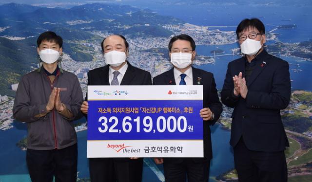 ±ÝÈ£¼®À¯ÈÇÐ(ºÎ»çÀå ¼Û¼®±Ù)ÀÌ 19ÀÏ ¿©¼ö½Ã Àú¼Òµæ ÁßÀå³âÃþÀ» À§ÇÑ ¹«·áÀÇÄ¡ Áö¿ø»ç¾÷¿¡ ÀÓÁ÷¿ø°ú ȸ»ç°¡ ÇÔ²² ¸¶·ÃÇÑ 32,619õ ¿øÀ» ÈÄ¿øÇØ Çູ¹Ì¼Ò ÀüÆÄ¿¡ ¾ÕÀå¼°í ÀÖ´Ù. (»çÁøÀº ±ÝÈ£¼®À¯ÈÇÐ ¼Û¼®±Ù ºÎ»çÀåÀÌ 19ÀÏ ¿©¼ö½Ãû ½ÃÀå½ÇÀ» ¹æ¹®ÇØ 32,619õ ¿øÀÇ ÈÄ¿øÁõ¼¸¦ ±Ç¿ÀºÀ ¿©¼ö½ÃÀå¿¡°Ô Àü´ÞÇϰí ÀÖ´Ù. )
