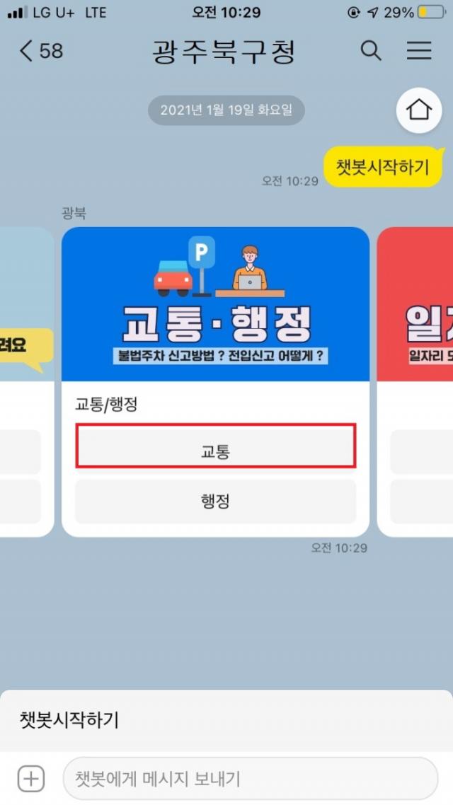 ÀÌ¿ë¹æ¹ýÀº īī¿ÀÅå °Ë»öâ¿¡ ¡®±¤Áֺϱ¸Ã»¡¯À» °Ë»öÇØ ä³Î Ãß°¡ ÈÄ Ã¤ÆÃâ ÇÏ´Ü¿¡ Áú¹®À» ÀÔ·ÂÇϰųª äÆÃâ¿¡¼ Á¦°øµÇ´Â ¸Þ´º¸¦ ¼±ÅÃÇϸé ÇàÁ¤, ±³Åë, ¼¼±Ý, º¹Áö µî¿¡ ´ëÇÑ Á¤º¸¸¦ ¾È³»¹ÞÀ» ¼ö ÀÖ´Ù.
