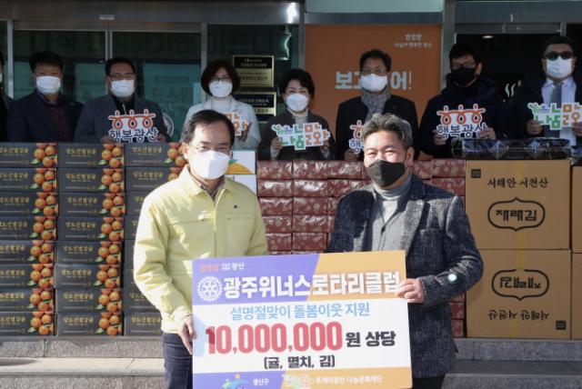 [È£³²´º½º¶óÀÎ = ¼ÀºÈ« ±âÀÚ] ±¤ÁÖÀ§³Ê½º·ÎŸ¸®Å¬·´(¹Úµ¿½Å ȸÀå)ÀÌ 3ÀÏ ¼Ò¿Ü°èÃþ¿¡°Ô ³ª´²´Þ¶ó¸ç 1,000¸¸¿ø »ó´çÀÇ ±Ö 100¹Ú½º¿Í ¸êÄ¡ 100¹Ú½º, ±è 100ÅêÀ» ±¤»ê±¸¿¡ ¸Ã°å´Ù.