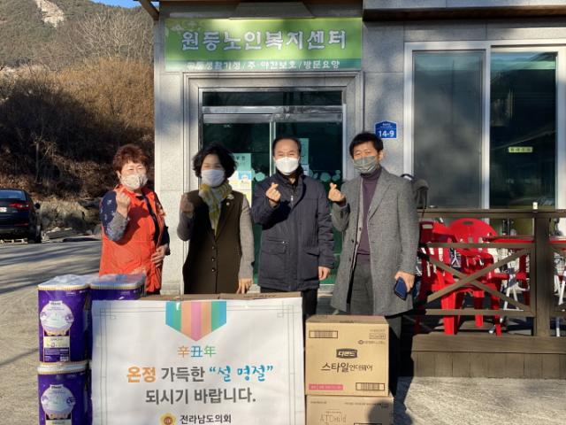 [È£³²´º½º¶óÀÎ = ¼ÀºÈ« ±âÀÚ] Àü¶ó³²µµÀÇȸ Á¤¿Á´Ô ÀÇ¿ø(´õºÒ¾î¹ÎÁÖ´ç, ºñ·Ê)ÀÌ Áö³ 2ÀÏ ¼³ ¸íÀýÀ» ¸ÂÀÌÇÏ¿© °î¼º±º »ï±â¸é¿¡ À§Ä¡ÇÑ ³ëÀκ¹Áö¼¾Å͸¦ ¹æ¹®ÇØ À§¹®Ç°À» Àü´ÞÇÏ¸ç µû¶æÇÑ Á¤À» ³ª´³´Ù.