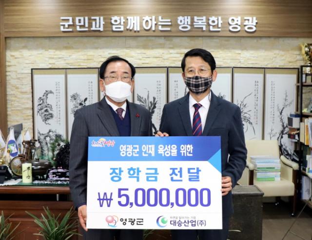 [È£³²´º½º¶óÀÎ = ±è¿ëÂù ±âÀÚ] ¿µ±¤±º ±º¼¸é ³ó°ø´ÜÁö ¼ÒÀç ´ë½Â»ê¾÷(ÁÖ)(´ëÇ¥ÀÌ»ç À±¿µÃ¶)Àº Áö³ 5ÀÏ, ¿µ±¤±º(±º¼ö ±èÁؼº)¿¡ Áö¿ªÀÎÀç À°¼ºÀ» À§ÇÑ ÀåÇбÝÀ¸·Î 5¹é¸¸¿øÀ» ±âŹÇÏ¿´´Ù.