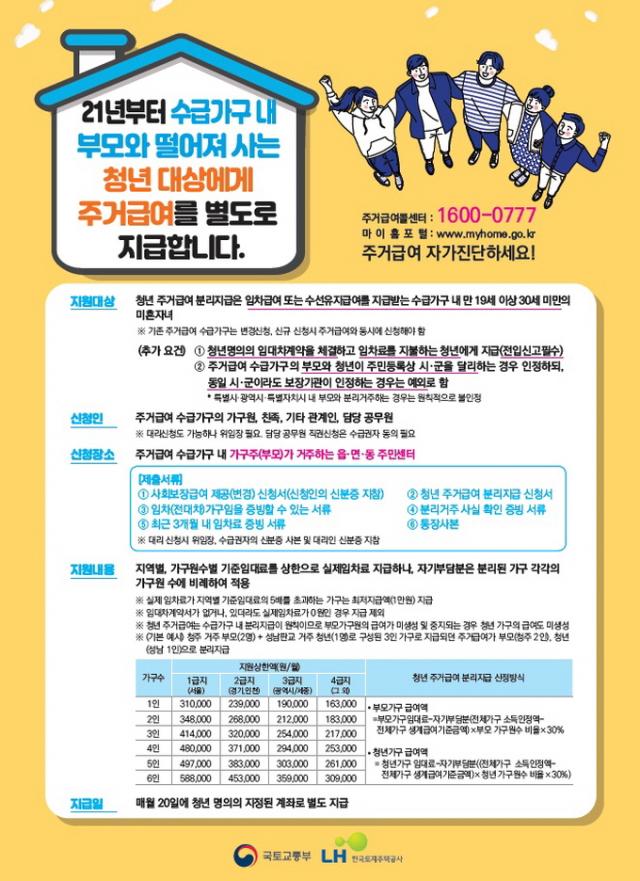 ±âÁ¸¿¡´Â ¼ö±Þ°¡±¸ ³» ¹ÌÈ¥ û³âÀÌ ºÎ¸ð¿Í ¶³¾îÁ® °ÅÁÖÇÏ´õ¶óµµ ±¹¹Î±âÃÊ»ýȰº¸Àå¹ý»ó ÇÑ °¡±¸·Î ÀÎÁ¤µÅ Áְű޿©°¡ Àϰý Áö±ÞµÆ´Ù. ÇÏÁö¸¸ ¿ÃÇØºÎÅÍ´Â ºÎ¸ð¿¡°Ô Áö±ÞµÇ´Â Áְű޿©¿Í º°°³·Î µû·Î »ç´Â û³âµéµµ Áְű޿©¸¦ ¹ÞÀ» ¼ö ÀÖ°Ô µÆ´Ù.