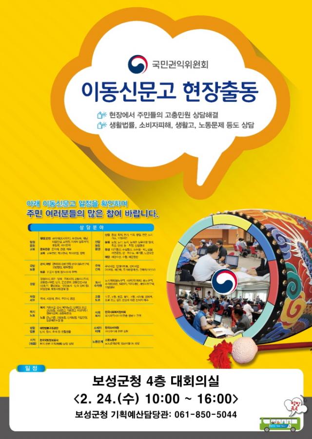 ÇÑÆí, ±¹¹Î±ÇÀÍÀ§¿øÈ¸´Â »ý°è³ª °Åµ¿ ºÒÆí µîÀÇ ÀÌÀ¯·Î ¹Î¿ø ÇØ°áÀÌ ¾î·Á¿î Áö¿ª ÁֹεéÀ» À§ÇØ ºÐ¾ßº°°í Àü¹® Á¶»ç°üµéÀ» ±¸¼ºÇØ À̵¿½Å¹®°í¸¦ ¿î¿µÇϰí ÀÖ´Ù. À̹ø »ó´ã¿¡´Â º¸¼º±º¹Î »Ó¸¸ ¾Æ´Ï¶ó Àα٠¼øÃµ, ȼø, °íÈï Áö¿ª Áֹε鵵 »ó´ãÀÌ °¡´ÉÇÏ°í »ó´ã Á¶»ç°üÀÌ 15°³ ºÐ¾ßº°·Î ¹èÄ¡ µÅ °³º° °íÃæ¹Î¿øÀ» »ó´ã ¹ÞÀ» ¼ö ÀÖ´Ù.
