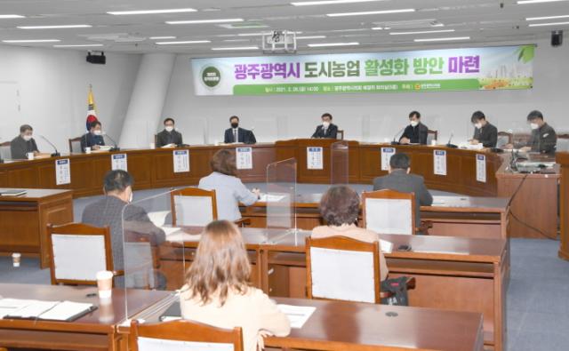 [È£³²´º½º¶óÀÎ = ¼ÀºÈ« ±âÀÚ] ±¤ÁÖ½ÃÀÇȸ´Â 26ÀÏ ¡®±¤ÁÖ±¤¿ª½Ã µµ½Ã³ó¾÷Ȱ¼ºÈ ¹æ¾È ¸¶·Ã¡¯À̶õ ÁÖÁ¦·Î Åä·Ðȸ¸¦ °³ÃÖÇÏ¿©, Äڷγª19 µî ½Ã´ëÀÇ º¯È¿¡ µû¶ó ±¤ÁÖ±¤¿ª½Ã µµ½Ã³ó¾÷ÀÌ ¾î¶»°Ô ´ëÀÀÇØ ³ª¾Æ°¡¾ß ÇÒÁö ±× ¹æ¾ÈÀ» ¸ð»öÇß´Ù.