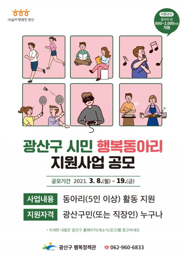 [È£³²´º½º¶óÀÎ = ¼ÀºÈ« ±âÀÚ] ±¤Áֽà ±¤»ê±¸(±¸Ã»Àå ±è»ïÈ£)°¡ 19ÀϱîÁö ¡®2021 ½Ã¹ÎÇູµ¿¾Æ¸® Áö¿ø»ç¾÷¡¯ ´ë»ó ´Üü¸¦ ¸ðÁýÇÑ´Ù.