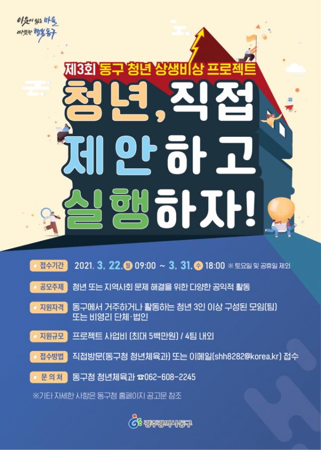 [È£³²´º½º¶óÀÎ = ¼ÀºÈ« ±âÀÚ] ±¤Áֽà µ¿±¸(ûÀå ÀÓÅÃ)´Â ¡®Á¦3ȸ µ¿±¸ û³â »ó»ýºñ»ó ÇÁ·ÎÁ§Æ®¡¯ Âü¿©ÀÚ¸¦ ¸ðÁýÇÑ´Ù°í ¹àÇû´Ù.
