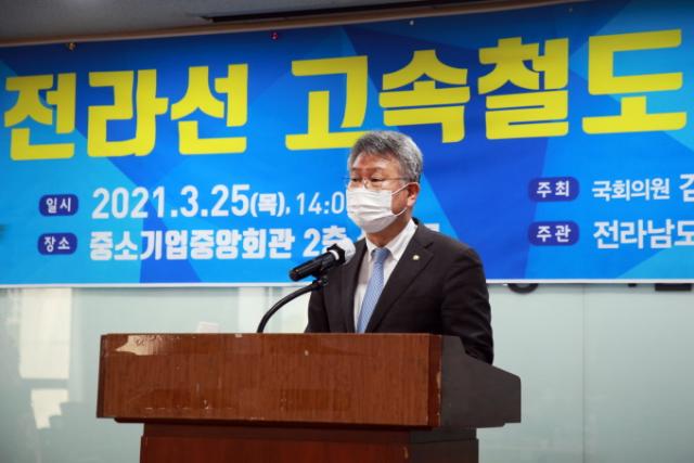 ÀÌ¾î ¡°Àü¶ó¼±À» °í¼Óö·Î ½Å¼³ÇÒ ½Ã ÀÍ»ê~¿©¼ö ±¸°£ÀÌ ±âÁ¸ 98ºÐ¿¡¼ 60ºÐÀ¸·Î ´ÜÃàµÇ¸é¼ ¼¿ï~¿©¼ö 2½Ã°£´ë ÁøÀÔÀÌ °¡´ÉÇÏ´Ù¡±¸ç, ¡°Áö¿ª±ÕÇü¹ßÀüÀ» ÀÌ·ç°í, ³²ÇØ¾È±Ç ½Å¼ºÀå °ü±¤º§Æ®ÀÇ ±âƲÀ» ´ÙÁ® ´ëÇѹα¹ÀÇ »õ·Î¿î ¼ºÀå µ¿·ÂÀ» ¸¶·ÃÇϱâ À§ÇØ Àü¶ó¼± °í¼Óöµµ¸¦ ¹Ýµå½Ã ÃßÁøÇØ¾ß ÇÑ´Ù¡±°í Àü¶ó¼± °í¼ÓöµµÀÇ Àý½ÇÇÑ Çʿ伺À» ÀüÇß´Ù.