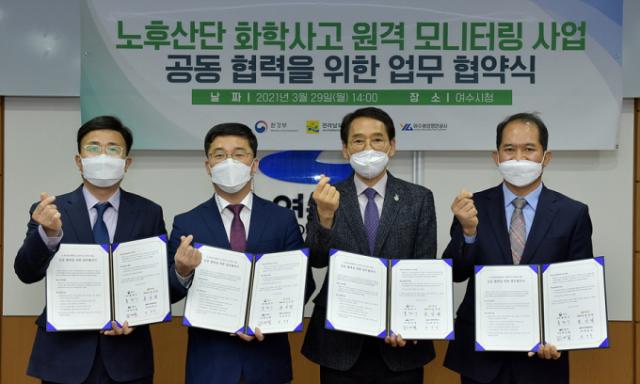 ¿©¼ö½Ã(½ÃÀå ±Ç¿ÀºÀ)°¡ ȯ°æºÎÀÇ Çѱ¹ÆÇ µðÁöÅдºµô »ç¾÷ÀÎ ¡®³ëÈÄ»ê´Ü ÈÇй°Áú À¯¡¤´©Ãâ ¸ð´ÏÅ͸µ¡¯ ½Ã¹ü»ç¾÷¿¡ ¿©¼ö±¹°¡»ê¾÷´ÜÁö°¡ ÃÖÁ¾ ¼±Á¤µÊ¿¡ µû¶ó, 29ÀÏ ¿ÀÈÄ ¿©¼ö½Ã¿Í ȯ°æºÎ, Àü¶ó³²µµ, ¿©¼ö±¤¾çÇ׸¸°ø»ç°¡ ¿©¼ö½Ãû »óȲ½Ç¿¡¼ ½Ã¹ü»ç¾÷ÀÇ ¼º°ø¼öÇàÀ» À§ÇÑ ¾÷¹«Çù¾àÀ» ü°áÇß´Ù.