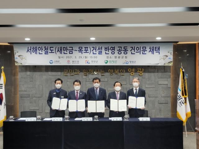 [È£³²´º½º¶óÀÎ = ±è¿ëÂù ±âÀÚ] ¿µ±¤±ºÀº Áö³ 3¿ù 29ÀÏ ¿µ±¤±ºÃ»¿¡¼ ¼ÇØ¾È Ã¶µµ °æÀ¯ÁöÀÎ °íâ, ºÎ¾È, ¹«¾È, ÇÔÆò, ¿µ±¤±º 5°³ ÀÚÄ¡´ÜüÀåÀÌ Âü¿©ÇÑ °¡¿îµ¥ Á¦4Â÷ ±¹°¡ öµµ¸Á ±¸Ãà°èȹ¿¡ ¼ÇØ¾È Ã¶µµ °Ç¼³À» ¹Ý¿µ Çϵµ·Ï Ã˱¸ÇÏ´Â °øµ¿ °ÇÀǹ®À» äÅÃÇÏ¿´´Ù.