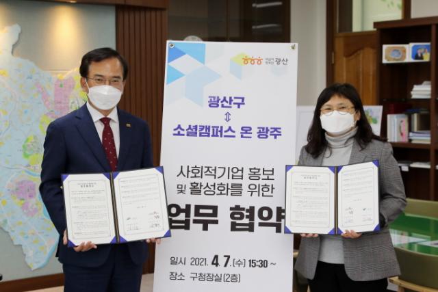 [È£³²´º½º¶óÀÎ = ¼ÀºÈ« ±âÀÚ] ±¤Áֽà ±¤»ê±¸(±¸Ã»Àå ±è»ïÈ£)´Â Áö³ 7ÀÏ ¿ÀÈÄ ¡®¼Ò¼ÈÄ·ÆÛ½º ¿Â ±¤ÁÖ¡¯(»çȸÀû±â¾÷ ¼ºÀåÁö¿ø¼¾ÅÍ)¿Í »çȸÀû ±â¾÷ È«º¸ ¹× Ȱ¼ºÈ¸¦ À§ÇÑ ¾÷¹« Çù¾àÀ» ü°áÇß´Ù.