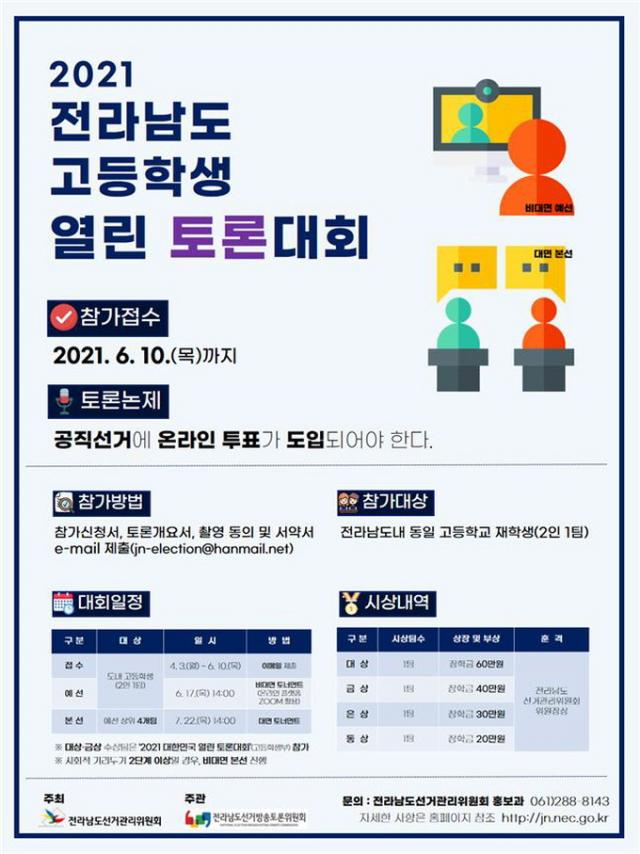 [È£³²´º½º¶óÀÎ = ¼ÀºÈ« ±âÀÚ] Àü¶ó³²µµ¼±°Å¹æ¼ÛÅä·ÐÀ§¿øÈ¸´Â µµ³» °íµîÇб³ ÀçÇлýÀ» ´ë»óÀ¸·Î ¡¸2021³â Àü¶ó³²µµ °íµîÇлý ¿¸° Åä·Ð´ëȸ¡¹¸¦ °³ÃÖÇÑ´Ù°í ¹àÇû´Ù.