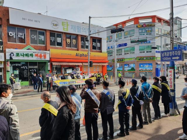 ¾Æ¿ï·¯, Âü°¡ÀÚµéÀº Çö¼ö¸·, ¾î±ú¶ì, Äڷγª19 ¾ÈÀü½Å¹®°í È«º¸¾È³» ¸®Çø´ µîÀ» Ȱ¿ëÇÏ¿© °íÈïÅ͹̳ÎÀ» ½ÃÀÛÀ¸·Î ½Ã°¡Áö ¹× 5ÀÏ ½ÃÀå ÁÖº¯À» ¼øÈ¸Çϸç 5´ë ÁÖÁ¤Â÷ ±ÝÁö±¸¿ª(¾î¸°ÀÌ º¸È£±¸¿ª, ¼ÒÈÀü ÁÖº¯ 5m, ±³Â÷·Î ¸ðÅüÀÌ 5m µî) ºÒ¹ý ÁÖÁ¤Â÷ ±ÝÁö ¹× ±³Åë¾ÈÀü È«º¸¸¦ ÁøÇàÇÏ¿´°í, È«º¸¹°Ç°(Àü´ÜÁö µî)À» ¹èºÎÇÏ¸ç °ü³» Áֹε鿡°Ô Ä·ÆäÀÎ Âü¿©¸¦ µ¶·ÁÇß´Ù.