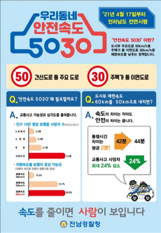 ¡®¾ÈÀü¼Óµµ 5030¡¯Àº º¸ÇàÀÚ ¾ÈÀü°ú ±³Åë»ç°í °¨¼Ò¸¦ À§ÇØ µµ½É³» ÁÖ¿ä µµ·Î¿¡¼´Â 50km/h, º¸È£±¸¿ªÀ̳ª ÁÖÅð¡ À̸鵵·Î¿¡¼´Â 30km/h·Î ÇÏÇâ Á¶Á¤µÇ´Â Á¤Ã¥ÀÌ´Ù.