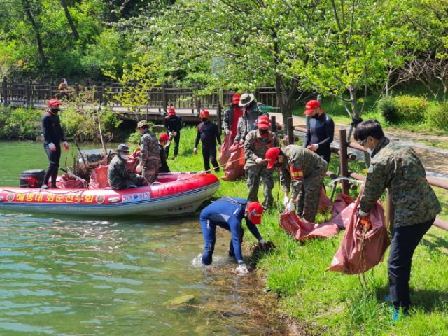 ÇØº´´ë ȼøÀü¿ìȸ¿øµéÀº À̳¯ Àá¼ö Àåºñ¿Í º¸Æ® µîÀ» ÀÌ¿ëÇØ º½ºñ·Î È£¼ö¿¡ À¯ÀÔµÈ ºÎÀ¯¹°°ú ¾²·¹±â¸¦ ¼ö°ÅÇϰí, ħ¼öµÈ ä ¹Ì°üÀ» ÇØÄ¡´Â °í¸ñµéµµ Á¦°ÅÇß´Ù.