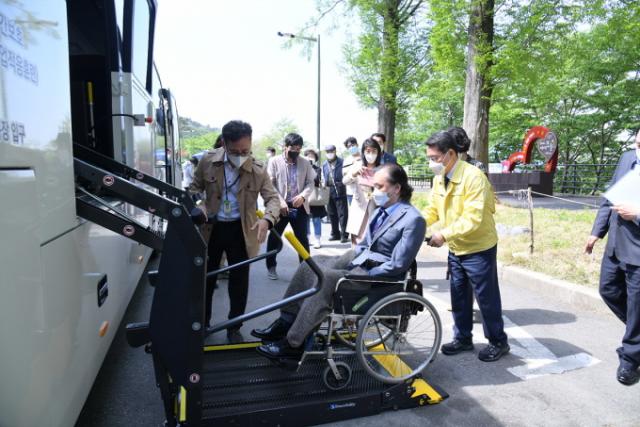¿©¼ö½Ã(½ÃÀå ±Ç¿ÀºÀ)°¡ 20ÀÏ ¡®Á¦41ȸ Àå¾ÖÀÎÀÇ ³¯¡¯À» ¸Â¾Æ ¿©¼ö½ÃÀå¾ÖÀÎÁ¾ÇÕº¹Áö°ü¿¡ 40Àν Àå¾ÖÀÎ ÈÙü¾î ¸®ÇÁÆ® ¹ö½º¸¦ Àü´Þ, °Åµ¿ÀÌ ºÒÆíÇÑ Àå¾ÖÀεéÀÌ Æí¸®ÇÏ°í ¾ÈÀüÇÏ°Ô À̵¿ÇÒ ¼ö ÀÖ´Â ¾ÈÀüÁöÅ´ÀÌÀÇ ¿ªÇÒÀ» ÅåÅåÈ÷ ¼öÇàÇÏ°Ô µÆ´Ù.