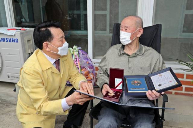 ¡¸ÀåÈﱺ È£±¹¿µ¿õ ã±â¡¹ »ç¾÷À» ÅëÇØ ½Å¿øÀÌ ¹àÇôÁø ¼öÈÆÀÚ ±è»óÀÍ(94¼¼) ¾¾´Â 1953³â 6¿ù °¿øµµ ö¿ø±º ±ÝÈÁö±¸ÀüÅõ¿¡ Âü°¡ÇØ ÇõÇõÇÑ °øÀ» ¼¼¿üÀ¸³ª, ´ç½ÃÀÇ ±Þ¹ÚÇÑ ÀüȲ°ú ÀüÀïÈÄÀ¯ÁõÀ¸·Î ÈÆÀåÀ» ¼ö¿©¹ÞÁö ¸øÇϰí 68³âÀÌ Áö³ª ÈÆÀåÀ» ¹Þ°Ô µÆ´Ù.