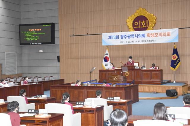 [È£³²´º½º¶óÀÎ = ¼ÀºÈ« ±âÀÚ] ±¤ÁÖ±¤¿ª½ÃÀÇȸ(ÀÇÀå ±è¿ëÁý)´Â 4¿ù 22ÀÏ(¸ñ) 10½Ã¿¡ ½ÃÀÇȸ º»È¸ÀÇÀå¿¡¼ ±¤ÁÖ¼Û¿øÃʵîÇб³ ÇлýµéÀ» ´ë»óÀ¸·Î ¡®±¤ÁÖ±¤¿ª½ÃÀÇȸ Á¦73ȸ Çлý ¸ðÀÇÀÇȸ¡¯¸¦ °³ÃÖÇß´Ù.