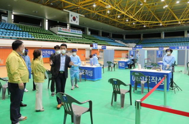 ¶ÇÇÑ, ¿µ¾Ï½Ç³»Ã¼À°°ü¿¡ ¸¶·ÃµÈ Äڷγª19 ¹é½Å ¿¹¹æÁ¢Á¾¼¾Å͸¦ ¹æ¹®ÇÏ¿© 75¼¼ ÀÌ»ó ¾î¸£½Å ¹× ³ëÀνü³À» ´ë»óÀ¸·Î ¼øÁ¶·Ó°Ô ÁøÇàµÇ°í ÀÖ´Â ¿¹¹æÁ¢Á¾ ÀýÂ÷, ¹æ¿ª ¹× ¹é½Åº¸°ü ½ÇÅ µî Àü¹ÝÀûÀÎ »çÇ×À» Á¡°ËÇϸç ÇöÀå¿¡¼ ÃÖ¼±À» ´ÙÇϰí ÀÖ´Â º¸°Ç¼Ò¿Í À¯°ü±â°ü¿¡ °Ý·Á¿Í °¨»ç¸¦ Ç¥Çß´Ù.