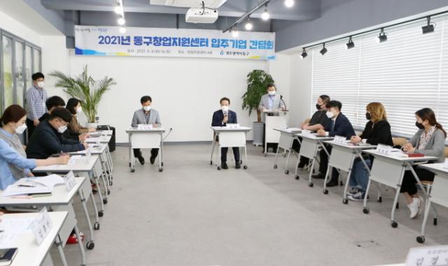 [È£³²´º½º¶óÀÎ = ¼ÀºÈ« ±âÀÚ] ±¤Áֽà µ¿±¸(ûÀå ÀÓÅÃ)´Â Áö³ 4ÀÏ µ¿±¸Ã¢¾÷Áö¿ø¼¾ÅÍ¿¡¼ ÀÔÁÖ±â¾÷ °£ Á¤º¸°øÀ¯ ¹× Çù·Â °È¸¦ À§ÇÑ ¡®ÀÔÁÖ±â¾÷ °£´ãȸ¡¯¸¦ °³ÃÖÇß´Ù°í ¹àÇû´Ù.