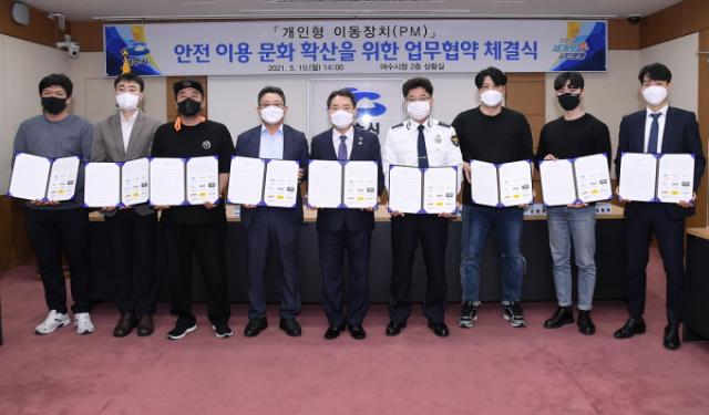 ¿©¼ö½Ã(½ÃÀå ±Ç¿ÀºÀ)°¡ Áö³ 10ÀÏ ¿©¼ö½Ãû »óȲ½Ç¿¡¼ ¿©¼ö±³À°Áö¿øÃ», ¿©¼ö°æÂû¼ ±×¸®°í Àüµ¿Å±º¸µå ´ë¿©¾÷ü 6¸íÀÇ ´ëÇ¥µé°ú ¡®°³ÀÎÇü À̵¿ÀåÄ¡(PM) ¾ÈÀü ÀÌ¿ë ¹®È È®»êÀ» À§ÇÑ ¾÷¹«Çù¾à¡¯À» ü°áÇÏ°í ±â³äÃÔ¿µÀ» Çϰí ÀÖ´Ù.