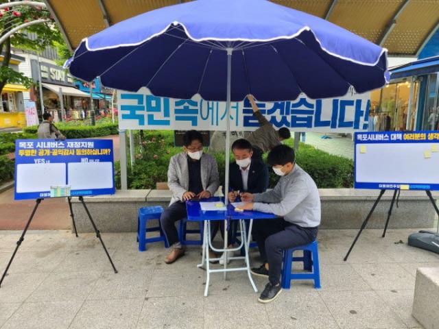 [È£³²´º½º¶óÀÎ = ¼ÀºÈ« ±âÀÚ] ´õºÒ¾î¹ÎÁÖ´ç ¸ñÆ÷½ÃÁö¿ªÀ§¿øÈ¸(¸ñÆ÷½Ã ±¹È¸ÀÇ¿ø ±è¿øÀÌ)´Â 5¿ù 26ÀÏ(¼ö) ¿ÀÀü 10½Ã, ¸ñÆ÷¿ª¿¡¼¡®Ã£¾Æ°¡´Â ¹ÎÁִ硯À» ¼³Ä¡Çϰí <±¹¹Î ¼ÒÅë ‧ ¹Î½É °æÃ»>À» ½ÃÀÛÇß´Ù.