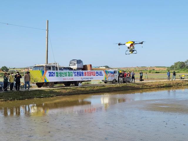 ±ºÀº Áö³ 25ÀÏ ³ó¾÷¿ë µå·ÐÀ» Ȱ¿ëÇÑ º Á÷ÆÄÀç¹è ±â¼úÀ» º¸±ÞÇϱâ À§ÇØ ¿î³²¸é µ¿¾Ï¸®¿¡¼ ³ó¾÷Àΰú ³óÇù °ü°èÀÚ µî 50¿©¸íÀÌ Âü¼®ÇÑ °¡¿îµ¥ ½Ò »ý»êºñ Àý°¨ µå·ÐȰ¿ë º Ç×°øÁ÷ÆÄ ¿¬½Ãȸ¸¦ °¡Á³´Ù.