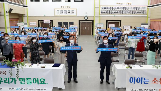 [È£³²´º½º¶óÀÎ = ¼ÀºÈ« ±âÀÚ] ±¤ÁÖ ±¤»ê±¸(±¸Ã»Àå ±è»ïÈ£)°¡ Áö³ 7ÀÏ ±¤»ê±¸Ã» 7Ãþ À±»ó¿øÈ¦¿¡¼ °ü³» º¸À°±³Á÷¿ø 80¿© ¸í°ú ÇÔ²² ¡®¾Æµ¿ÇÐ´ë ±ÙÀý ¾È½Éº¸À° ÀÚÁ¤ °áÀÇ´ëȸ¡¯¸¦ ½Ç½ÃÇß´Ù.