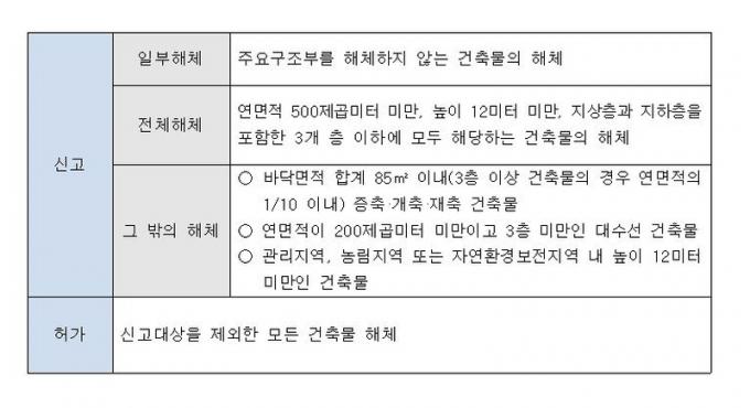 °ÇÃ๰ ÇØÃ¼ ½Å°í´ë»ó °ÇÃ๰Àº ¡ãÁÖ¿ä ±¸Á¶ºÎ ÇØÃ¼ ¾øÀÌ °ÇÃ๰ÀÇ ÀϺθ¦ ÇØÃ¼ÇÒ °æ¿ì ¡ã¿¬¸éÀû 500Á¦°ö¹ÌÅÍ ¹Ì¸¸, ³ôÀÌ 12¹ÌÅÍ ¹Ì¸¸, Áö»óÃþ°ú ÁöÇÏÃþÀ» Æ÷ÇÔÇÑ 3°³ Ãþ ÀÌÇÏ µî ¸ðµç »çÇ×À» ¸¸Á·ÇÏ´Â °ÇÃ๰ÀÇ Àüü¸¦ ÇØÃ¼ÇÒ °æ¿ì ¡ã°ü¸®Áö¿ª¡¤³ó¸²Áö¿ª¡¤ÀÚ¿¬È¯°æº¸ÀüÁö¿ª ³» ³ôÀÌ 12¹ÌÅÍ ¹Ì¸¸ÀÎ °ÇÃ๰À» ÇØÃ¼ÇÒ °æ¿ìÀÌ´Ù.