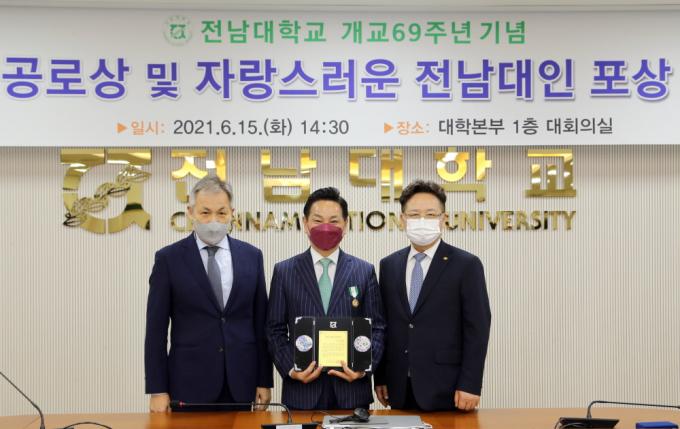 Àüµ¿Æò ¿µ¾Ï±º¼ö´Â ¡°¿ÃÇØ ¡®ÀÚ¶û½º·¯¿î Àü³²´ëÀΡ¯À̶ó´Â ¾î´À »óº¸´Ù ¿µ±¤½º·´°í °ªÁø »óÀ» ¹Þ¾Æ À̷縻ÇÒ ¼ö ¾øÀÌ ±â»Ú´Ù.¡± ¸ç ¡°¿ì¸® Àü³²´ëÇб³ÀÇ °³±³ 69ÁÖ³âÀ» Áø½ÉÀ¸·Î ÃàÇϵ帮¸ç, ¾ÕÀ¸·Îµµ ¸í½Ç»óºÎÇÑ ±Û·Î¹ú´ëÇÐÀ¸·Î¼ÀÇ À§»ó¿¡ °É¸Â°Ô ´ëÇѹα¹À» ³Ñ¾î ¼¼°èÀûÀÎ ÀÎÀ縦 ¾ç¼ºÇÏ´Â ´ëÇÐÀ¸·Î ´õ¿í ¿õºñÇØ ³ª°¡±â¸¦ ±â´ëÇÑ´Ù.¡±°í ¹àÇû´Ù.