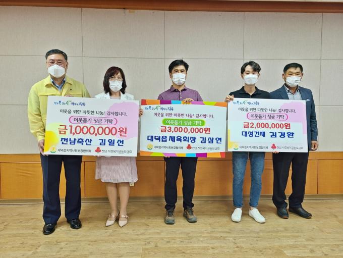 26È£ ±âŹÀÚ ´ë´öÀ¾Ã¼À°È¸Àå ±è»ï¿¬ 3¹é¸¸ ¿ø, 27È£ ±âŹÀÚ ´ë¼º°ÇÀç»ç ±è°æÈ¯ 2¹é¸¸ ¿ø, 28È£ ±âŹÀÚ Àü³²Ãà»ê ±èÀϼ± ´ëÇ¥°¡ 1¹é¸¸ ¿øÀ» ±âŹÇß´Ù.