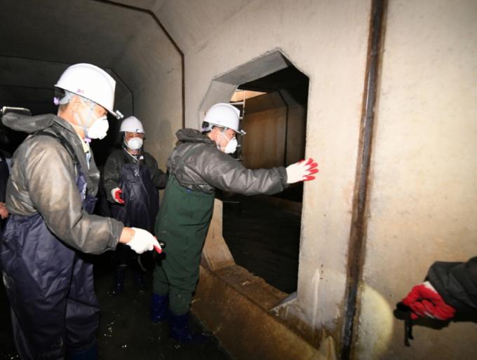 ½Å¼³µÈ Çϼö¾Ï°Å 522m ±¸°£À» ÀÏÀÏÀÌ Á¡°ËÇÏ¸é¼ ¾Ï°Å ³» ¸ð·¡ µî ÅðÀû¹°À» Á¤ºñÇϰí, Çϼö¸ÇȦÀÇ »óűîÁö üũÇß´Ù.