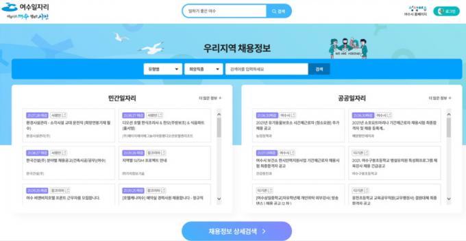 ÇÑÆí, ¡®¿©¼öÀÏÀÚ¸®¡¯(www.yeosu.go.kr/job/)´Â Æ÷ÅлçÀÌÆ®¿¡¼ ¡®¿©¼öÀÏÀÚ¸®¡¯ °Ë»öÀ» ÅëÇØ ½±°Ô Á¢±ÙÀÌ °¡´ÉÇϸç, 7¿ùºÎÅÍ °³ÆíµÈ ¿©¼ö½Ã ȨÆäÀÌÁö¸¦ ÅëÇØ µé¾î°¥ ¼ö ÀÖ´Ù.