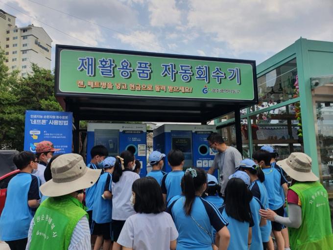 Àα٠ÁÖ¹Îµé ¹× ÃʵîÇб³ ÇлýµéÀÌ °¡Á¤¿¡¼ ³ª¿Â Åõ¸íÆäÆ®º´, À½·á¼ö ĵ µîÀ» °¡Áö°í ³ª¿Í ¡®ÀçȰ¿ëǰ ÀÚµ¿È¸¼ö±â¡¯¸¦ Á÷Á¢ »ç¿ëÇØº¸°í, ÇöÀå¿¡ ¹èÄ¡µÈ ÀÚ¿ø¼øÈ¯Çؼ³»çµé·ÎºÎÅÍ »õȰ¿ë Á¦Ç°ÀÇ ¼³¸íÀ» µéÀ¸¸é¼ ÀÚ¿ø¼øÈ¯ÀÇ Á߿伺À» Àϱú¿ï ¼ö ÀÖ´Â ±³À°ÀÇ ÀåÀ¸·Î¼ÀÇ ¿ªÇÒÀ» ÅåÅåÈ÷ Çϰí ÀÖ´Ù.