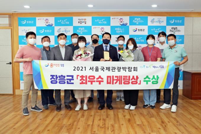 [È£³²´º½º¶óÀÎ = ¼ÀºÈ« ±âÀÚ] ÀåÈﱺÀº 6¿ù 24ÀϺÎÅÍ 27ÀϱîÁö 4Àϰ£ ¼¿ï ÄÚ¿¢½º(COEX)¿¡¼ ¿¸° ¡¸2021 ¼¿ï±¹Á¦°ü±¤¹Ú¶÷ȸ¡¹¿¡¼ ¿î¿µÇÑ È«º¸°üÀÌ ÃÖ¿ì¼ö ¸¶ÄÉÆÃ»óÀ» ¼ö»óÇß´Ù°í ¹àÇû´Ù.