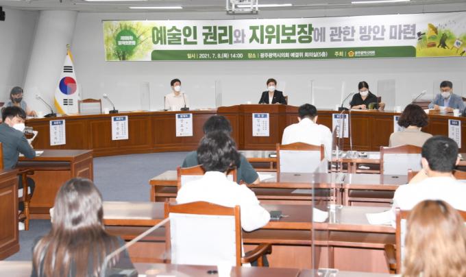[È£³²´º½º¶óÀÎ = ¼ÀºÈ« ±âÀÚ] ±¤ÁÖ½ÃÀÇȸ´Â 8ÀÏ ½ÃÀÇȸ ¿¹°áÀ§È¸Àǽǿ¡¼ ¡®¿¹¼úÀÎ ±Ç¸®, ÁöÀ§º¸Àå¿¡ °üÇÑ ¹æ¾È ¸¶·Ã¡¯À̶ó´Â ÁÖÁ¦·Î Á¤Ã¥Åä·Ðȸ¸¦ °³ÃÖÇß´Ù.