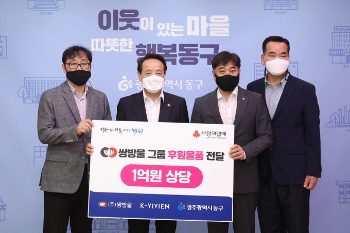 [È£³²´º½º¶óÀÎ = ¼ÀºÈ« ±âÀÚ] ±¤Áֽà µ¿±¸(ûÀå ÀÓÅÃ)´Â ½Ö¹æ¿ï±×·ì °è¿»çÀÎ ¢ß½Ö¹æ¿ï(´ëÇ¥ ±è¼¼È£)°ú ¢ßºñºñ¾È(´ëÇ¥ ¼Õ¿µ¼·)ÀÌ 1¾ï ¿ø »ó´çÀÇ ÀÚ»ç Á¦Ç°À» ¾î·Á¿î ÀÌ¿ôµé¿¡°Ô Àü´ÞÇØ´Þ¶ó¸ç ±âºÎÇØ¿Ô´Ù°í 12ÀÏ ¹àÇû´Ù.