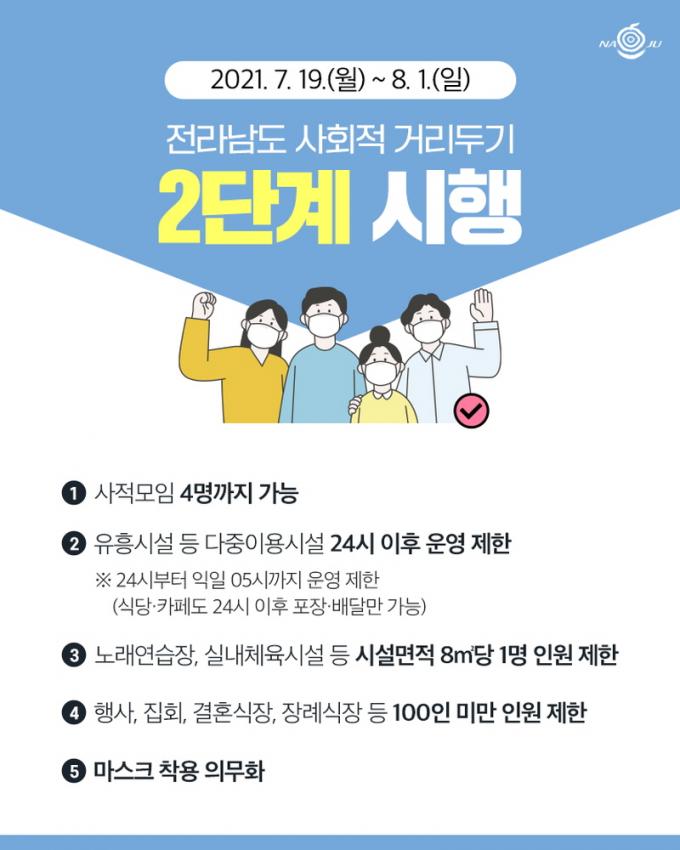 [È£³²´º½º¶óÀÎ = ¼ÀºÈ« ±âÀÚ] ³ªÁÖ½Ã(½ÃÀå °ÀαÔ)´Â Äڷγª19 °¨¿° ¿¹¹æ°ú Áö¿ª»çȸ È®»ê ¹æÁö¸¦ À§ÇÑ Àü¶ó³²µµ ÇàÁ¤¸í·É¿¡ µû¶ó 8¿ù 1ÀϱîÁö ¡®»çȸÀû °Å¸®µÎ±â °³Æí¾È 2´Ü°è¡¯¸¦ Àû¿ë¡¤½ÃÇàÇÑ´Ù°í 19ÀÏ ¹àÇû´Ù.