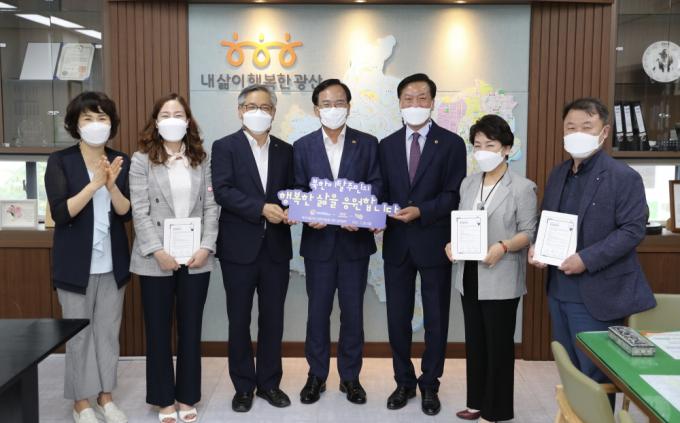 [È£³²´º½º¶óÀÎ = ¼ÀºÈ« ±âÀÚ] ±¤Áֽà ±¤»ê±¸(±¸Ã»Àå ±è»ïÈ£)°¡ 26ÀÏ ±¤ÁÖÇϳª¼¾ÅÍ(¼¾ÅÍÀå ÀÌÁ¾¸¸), Åõ°Ô´õ±¤»ê ³ª´®¹®ÈÀç´Ü(´ëÇ¥ ¾çµ¿È£)°ú ¡®ºÏÇÑÀÌÅ»ÁֹΠÁ¤ÂøÁö¿øÀ» À§ÇÑ ¾÷¹«Çù¾à¡¯À» ü°áÇß´Ù.