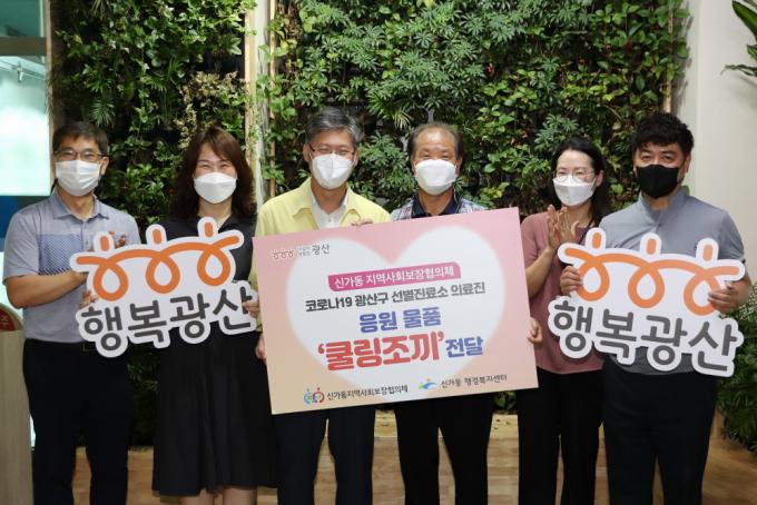 [È£³²´º½º¶óÀÎ = ¼ÀºÈ« ±âÀÚ] ±¤ÁÖ ±¤»ê±¸ ½Å°¡µ¿ Áö¿ª»çȸº¸ÀåÇùÀÇü(À§¿øÀå À屿¼ö)´Â ÃÖ±Ù ±¤»ê±¸ Äڷγª19 ¼±º°Áø·á¼Ò¸¦ ã¾Æ Æø¿° ¼Ó¿¡¼ °í±ººÐÅõÇÏ´Â ÀÇ·áÁø¿¡°Ô ³Ã¹æ ¿ëǰ ¡®Ä𸵠Á¶³¢¡¯ 15°³(250¸¸¿ø »ó´ç)¸¦ Àü´ÞÇß´Ù.