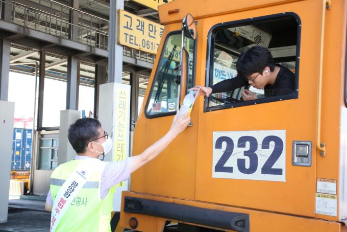 9ÀÏ ±¤¾çÇ× ÄÁÅ×À̳ʺεΠÅ͹̳ΠÀÔ±¸¿¡¼ ¿©¼ö±¤¾çÇ׸¸°ø»ç ±è¼±Á¾ ºÎ»çÀåÀÌ È¹°Â÷ ¿îÀüÀÚ¿¡°Ô »ý¼ö µîÀ» Àü´ÞÇÏ¸ç ¾ÈÀü¿îÀü Ä·ÆäÀÎÀ» ÆîÄ¡°í ÀÖ´Ù.