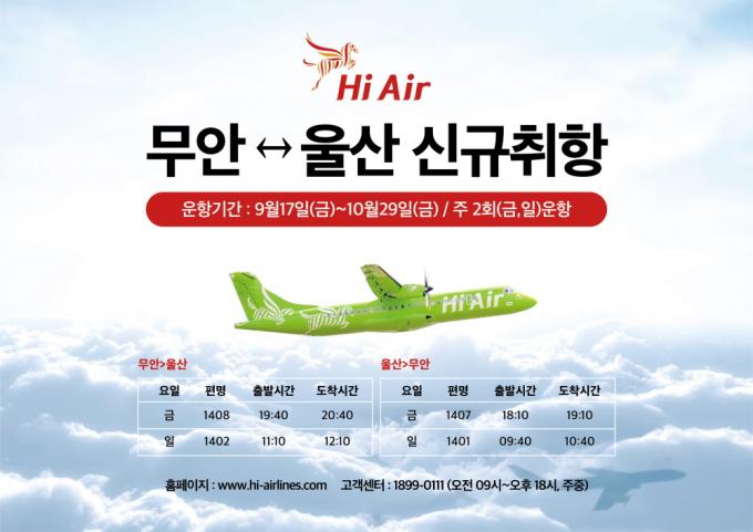 [È£³²´º½º¶óÀÎ = ¼ÀºÈ« ±âÀÚ] ¹«¾È±º(±º¼ö ±è»ê)Àº ¼ÒÇüÇ×°ø»ç ÇÏÀÌ¿¡¾î°¡ Áö³ 6¿ù ¹«¾È~±èÆ÷ ³ë¼±À» ÃëÇ×Çѵ¥ À̾î 9¿ù 17ÀϺÎÅÍ´Â ¹«¾È~¿ï»ê ºÎÁ¤±â ³ë¼±À» ±Ý¿äÀÏ 19½Ã 40ºÐ, ÀÏ¿äÀÏ 11½Ã 10ºÐ, ÁÖ 2ȸ ½Å±Ô ÃëÇ×ÇÑ´Ù°í ¹àÇû´Ù.