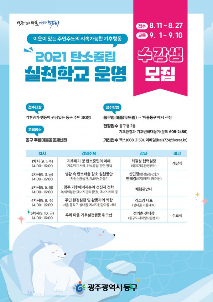 ±³À°Àº ¡ãź¼ÒÁ߸³ ¹× ±âÈÄÀ§±âÀÇ ÀÌÇØ ¡ã»ýȰ ¼Ó ź¼Ò¹èÃâ °¨¼Ò ½Çõ¹æ¾È ¡ã±âÈÄ¡¤¿¡³ÊÁö ºÐ¾ß ¼±ÁøÁö °ßÇÐ ¡ãÁֹΠȯ°æ½Çõ°ú Ȱµ¿°¡ÀÇ ¿ªÇÒ ¡ã¿ì¸® ¸¶À» ź¼ÒÁ߸³ ½ÇõÇൿ ¿öÅ©¼ó µî 5ȸ Â÷·Î ÁøÇàµÈ´Ù.